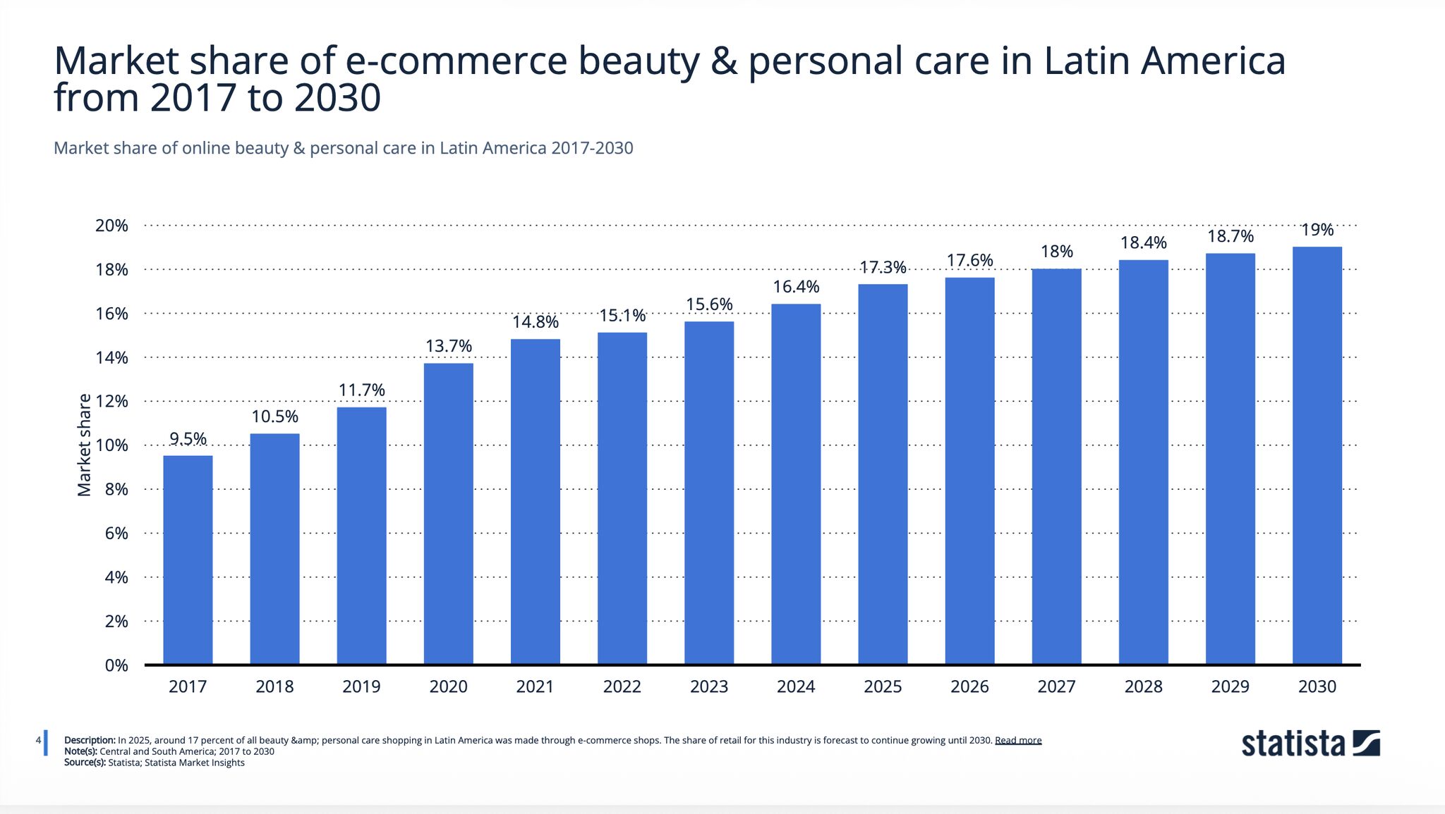 Segundo dados da Statista, o e-commerce de beleza e cuidados pessoais na América Latina deve atingir US$ 15,8 bilhões até 2030, após dez anos consecutivos de crescimento.